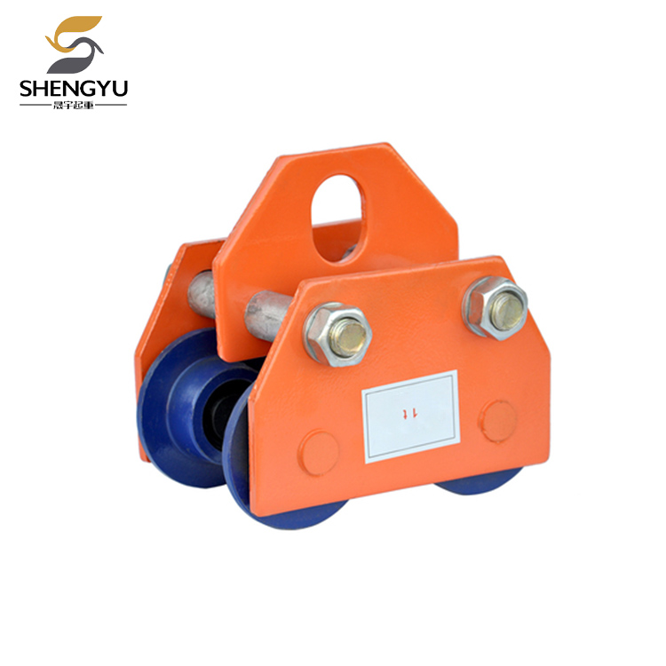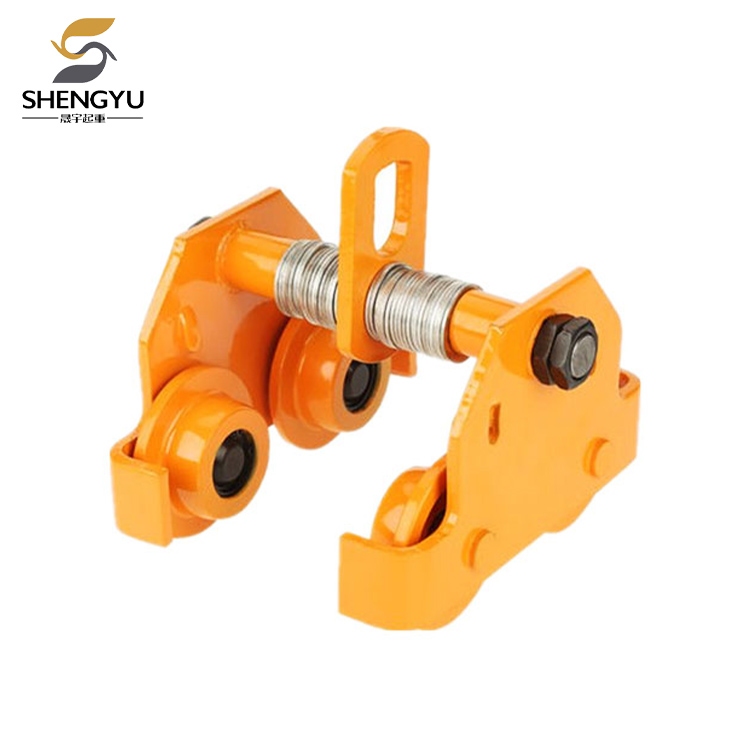 El carro simple se acciona mediante empuje manual para levantar objetos pesados y se desplaza sobre el borde de la brida inferior del riel de la viga en I. Al suspender un polipasto de cadena u otra maquinaria de elevación debajo del carro, se puede formar un carro de elevación y transporte manual. Se instala en líneas aéreas de transporte monorraíl (ya sean rectas o curvas) o en grúas manuales monorraíles, tipo puente y voladizas. Es ampliamente aplicable para instalar máquinas y levantar mercancías en lugares como fábricas, minas, muelles, astilleros, almacenes y salas de máquinas, y es especialmente adecuado para trabajos de mantenimiento de equipos en lugares sin suministro de energía.