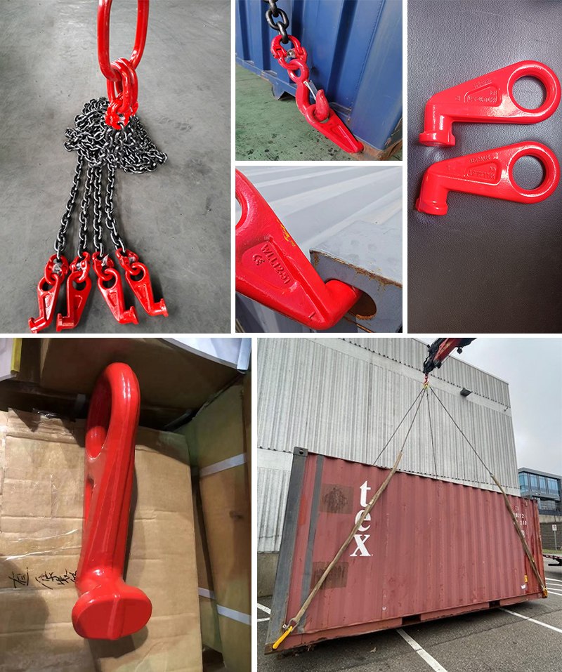 Hechos de acero de aleación de primera calidad, estosganchos de elevacióntienen una excelente capacidad de carga y resistencia a la tracción, y pueden manejar de manera confiable cargas pesadas de contenedores sin deformarse.